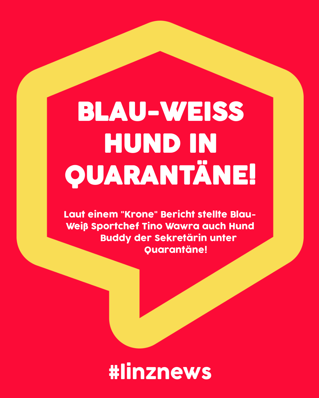 Laut einem “Krone” Bericht vom Samstag stellte FC Blau-Weiß Linz Sportchef Tino Wawra auch Hund Buddy der Sekretärin unter Quarantäne!