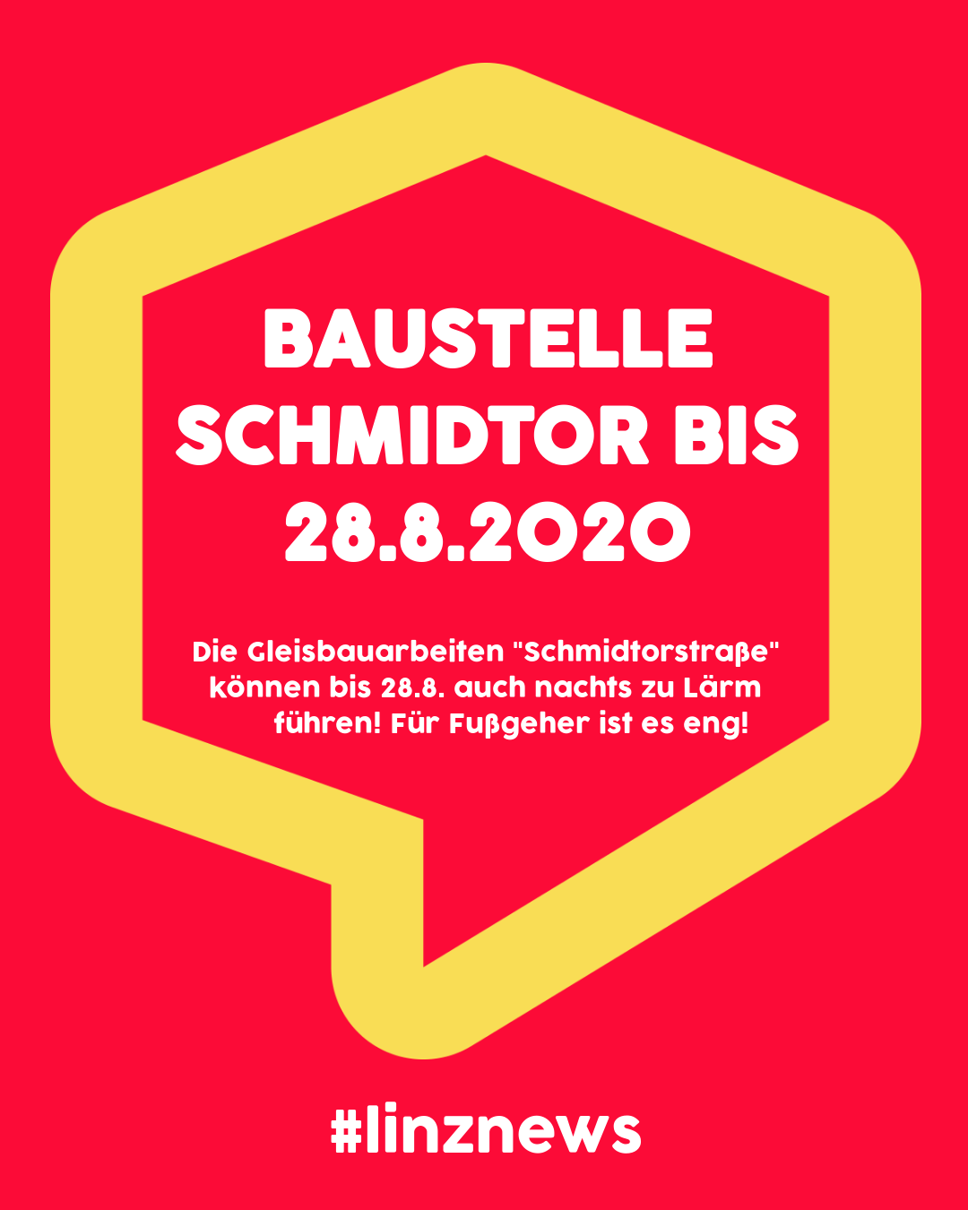 Die Gleisbauarbeiten in der Schmidtorstraße können bis 28.8. auch nachts zu Lärm führen! Für Fußgeher ist es eng!