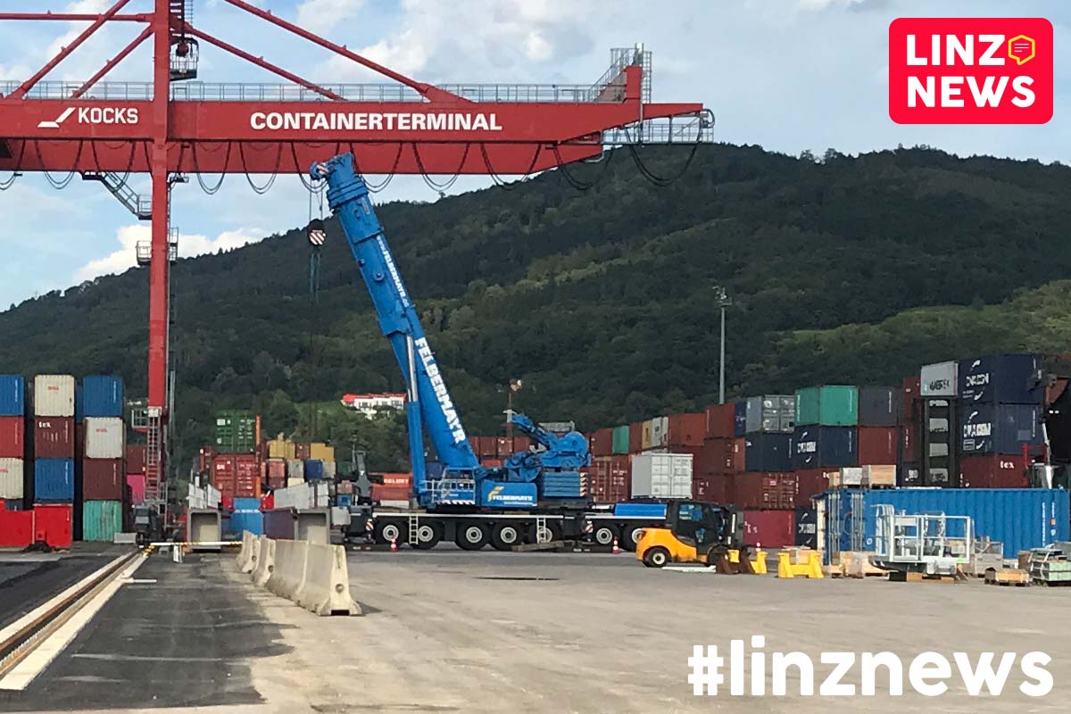Rund um das „Projekt Neuland“ im Linzer Hafen tut sich einiges. Derzeit wird ein zweiter Portalkran aufgebaut. Der Zweiträger-Portalkran mit beidseitiger Auskragung und Drehlaufkatze überspannt zukünftig zwei nebeneinanderliegende Binnenschiffe, vier Eisenbahngleise, je eine Lkw-Lade- und Fahrspur, eine Arbeitsfläche für mobile Umschlagsgeräte und eine Depotfläche.
