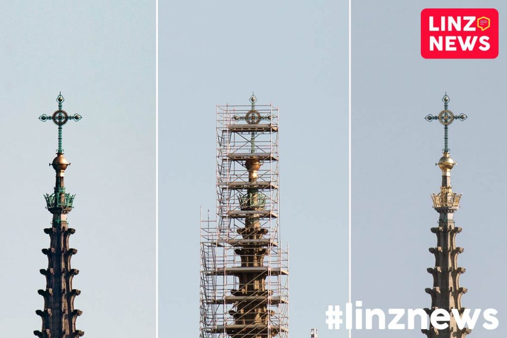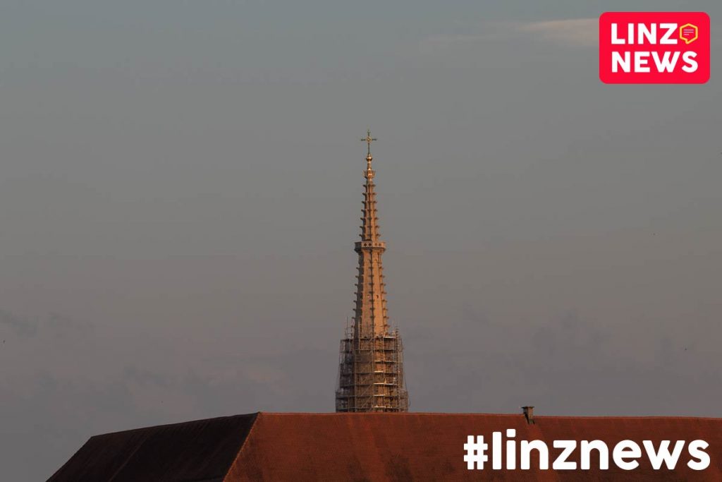 Die Sanierung des Linzer Mariendoms geht gut voran. In den letzten Tagen wurde das Gerüst weiter rückgebaut. Der Steinbalkon in 112 Meter Höhe ist wieder weitum sichtbar.