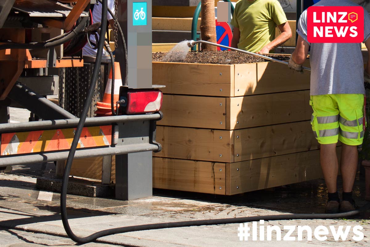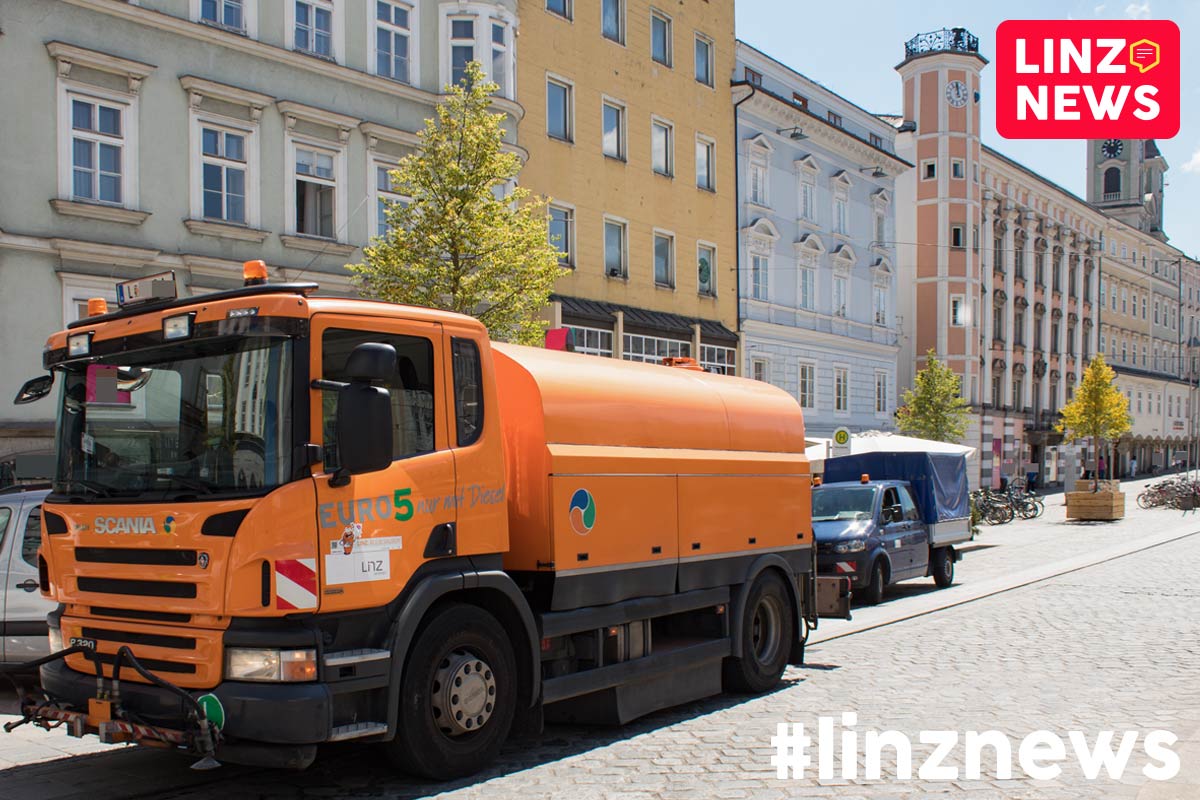 Mitarbeiter vom Geschäftsbereich Stadtgrün und Straßenbetreuung der Stadt Linz sind heute bereits mit einem Tankwagen (Diesel, Euro 5) voll Wasser angerückt!