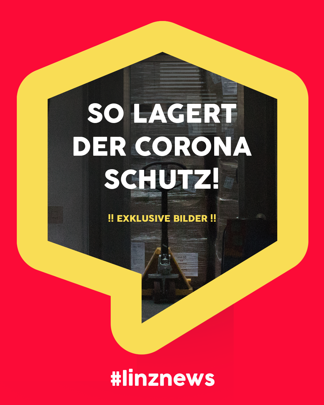 EXKLUSIV! Ein unscheinbares, ungesichertes, schmutziges Fenster mitten in Linz. Dahinter lagert augenscheinlich palettenweise Corona Schutzausrüstung in Kartons. Alles frei einsehbar für Passanten direkt vom Gehsteig.