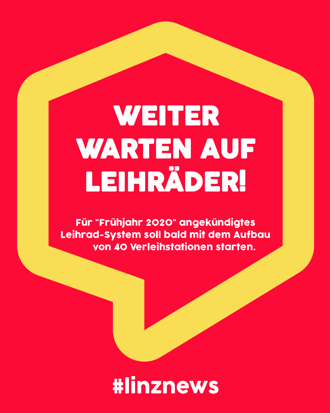 Das im September 2019 angekündigte öffentliche Fahrradverleihsystem (40 Stationen sowie 400 Räder) für Linz lässt weiter auf sich warten.