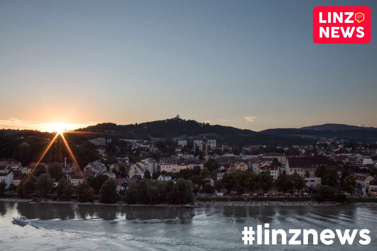 Sonnenuntergang hinter dem Pöstlingberg über Urfahr