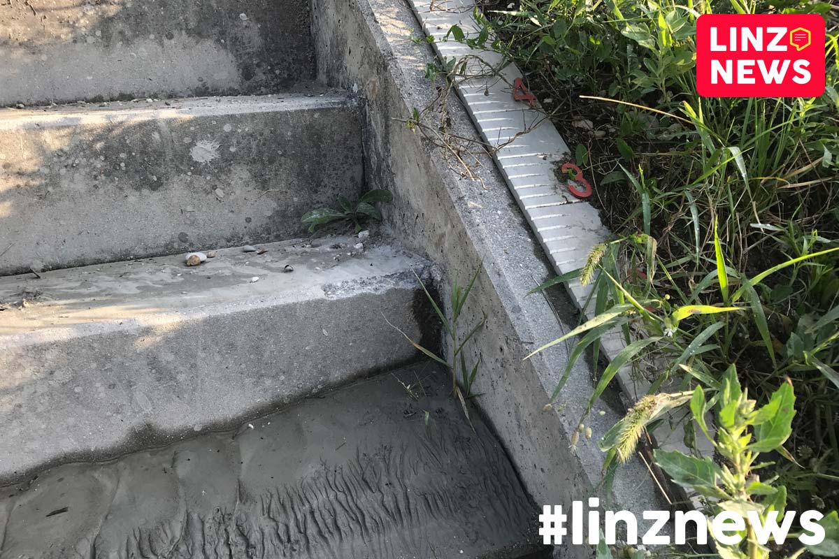Der Donaustrand in Alt-Urfahr ist derzeit noch von etwas Schlamm überzogen.