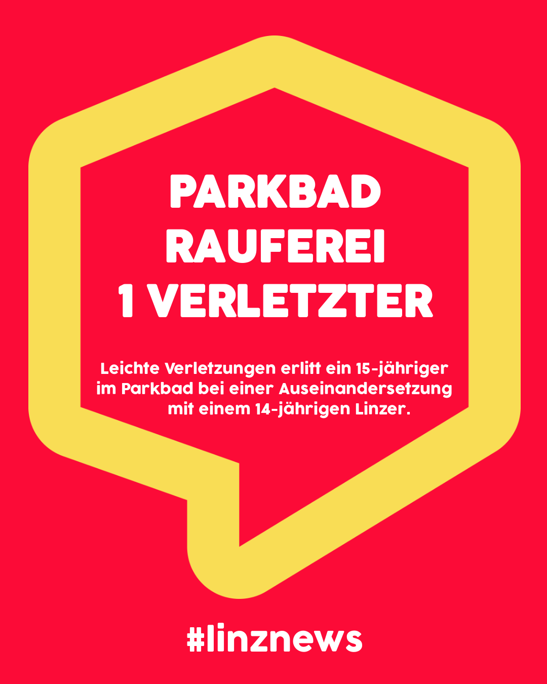 Leichte Verletzungen erlitt ein 15-jähriger Linzer am 10. August 2020 gegen 17:50 Uhr im Linzer Parkbad bei einer Auseinandersetzung mit einem 14-jährigen Linzer.