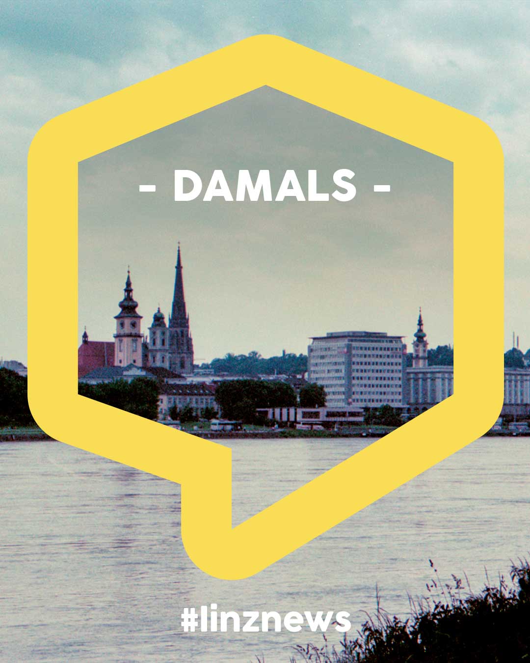 Blick auf die Skyline von Linz mit der ehemaligen DDSG-Schiffsanlegestelle. Nach dem Abbruch im Jahr 2000 wurde dort das Kunstmuseum Lentos errichtet.