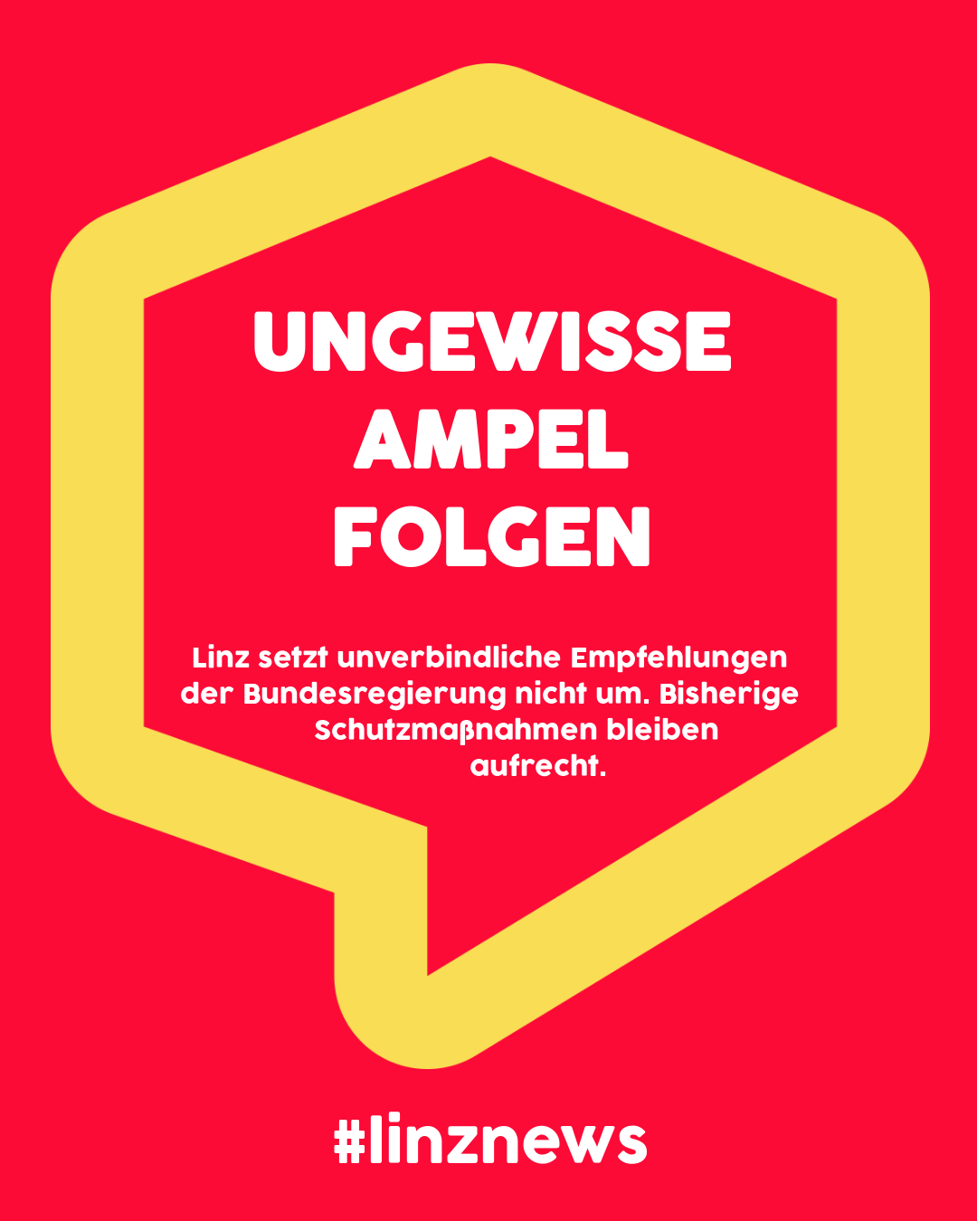 Stand 4.9. setzt Linz unverbindliche Empfehlungen der Bundesregierung nicht um. Bisherige Schutzmaßnahmen bleiben aufrecht.