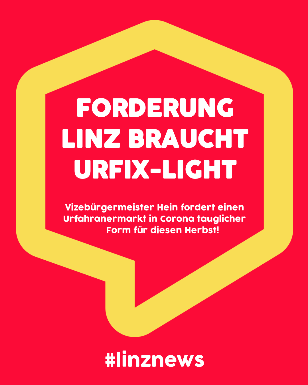 Der Vizebürgermeister gibt zu bedenken, dass auch der Wiener Prater, die Salzburger Festspiele und sogar Großdemonstrationen erlaubt sind. „Es wird wohl auch möglich sein, einen kleinen Herbstmarkt für die Linzerinnen und Linzer zu realisieren. Andere Städte leben bereits wirksame Konzepte – in Linz bringt Marktreferent Baier schlichtweg nichts hervor – klar, eine einfache Absage macht weniger Arbeit. Dass viele wegen seinem Unwillen und seiner Ideenlosigkeit wieder durch die Finger schauen müssen, ist nicht fair. Die Corona-Krise stellt unsere Heimatstadt vor neue Herausforderungen. Nur wenn wir diesen mit der nötigen Kreativität und Ehrgeiz begegnen, können wir sie auch lösen“, bekräftigt Hein abschließend.