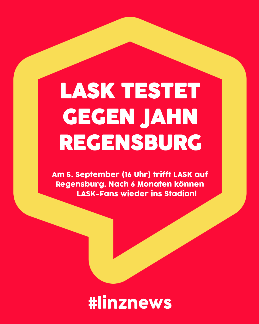 Der LASK trifft am Samstag, den 5. September (16 Uhr) auf den SSV Jahn Regensburg. Das Spiel findet in der Raiffeisen Arena Linz auf der Gugl statt. Erstmals seit März 2020 sind bei einem LASK-Heimspiel wieder Zuschauer zugelassen.