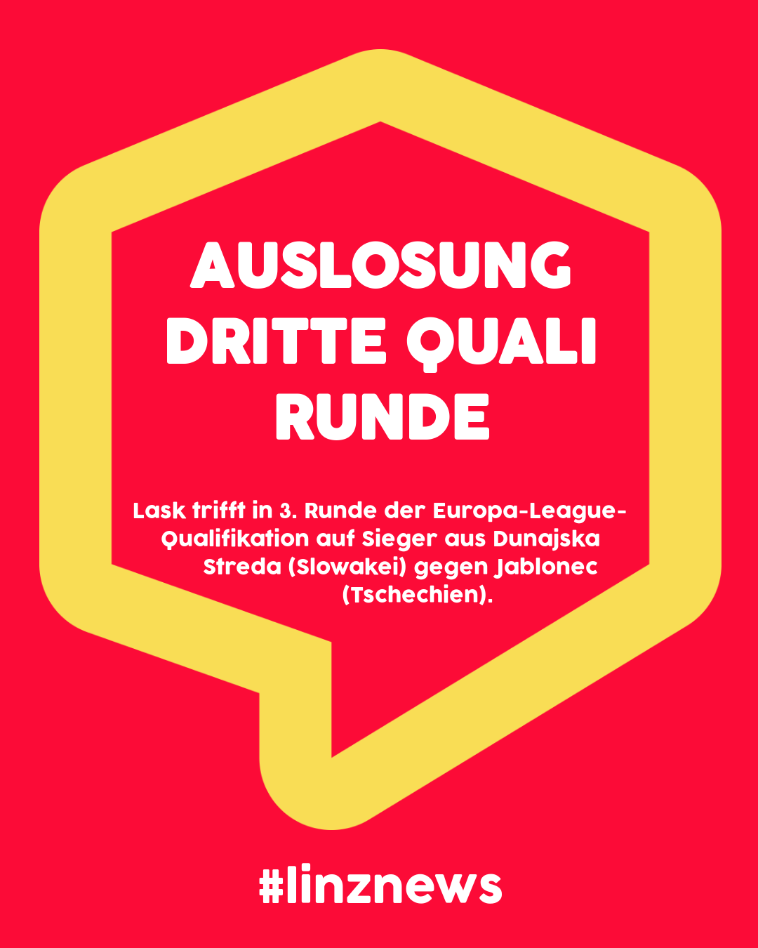 Lask trifft in 3. Runde der Europa-League-Qualifikation daheim auf Sieger aus Dunajska Streda (Slowakei) gegen FK Jablonec (Tschechien).