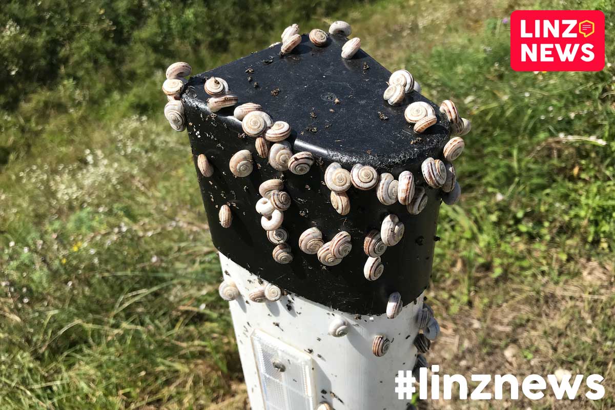 LINZ. Schnecken besiedeln Leitpflöcke im Linzer Süden.