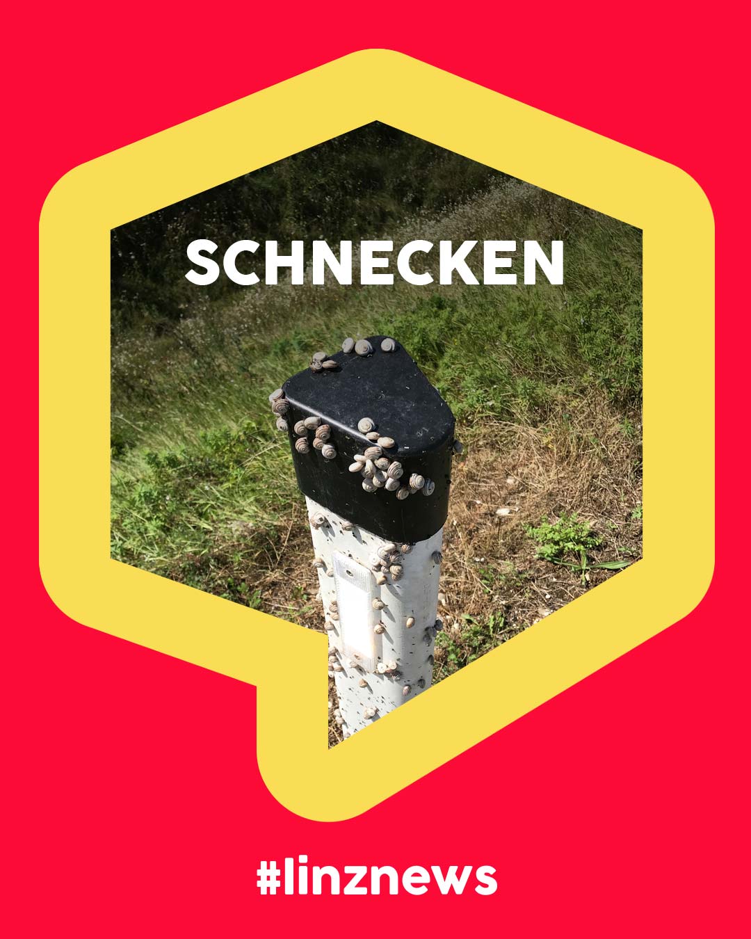 Kurios. Leitpflöcke scheinen in Linz beliebte Lebensräume für Tiere zu sein. Nach dem “Wespen-Leitpflock” gibt es beim Pichlinger See nun einige “Schnecken-Leitpflöcke”!