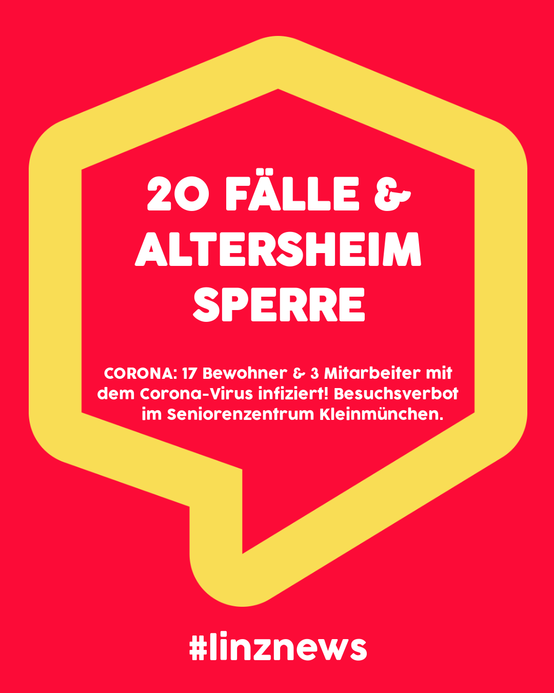 Laut Gesundheitsbehörde der Stadt Linz sind aktuell 20 Personen mit dem Corona-Virus im Seniorenzentrum Kleinmünchen infiziert. Der Bürgermeister ordnete daher die Schließung sowie ein Besuchsverbot an.