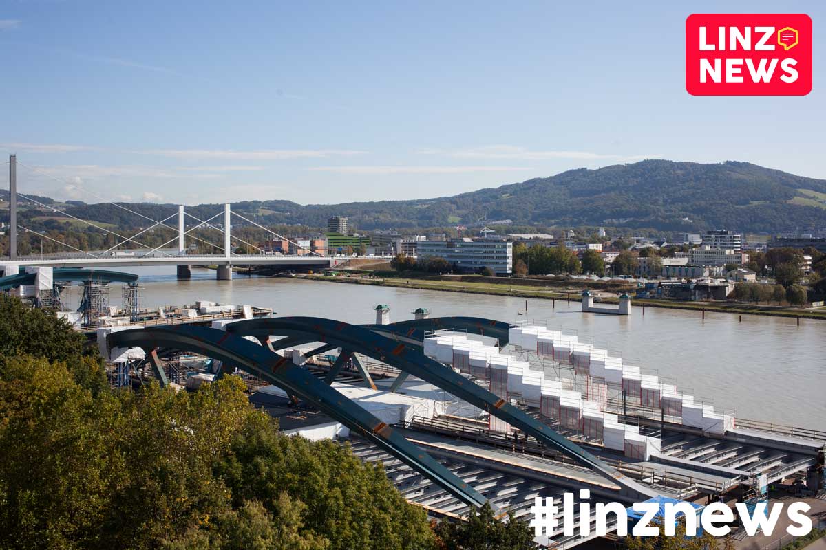 LINZ. Die Baustelle der neuen Linzer Brücke wird derzeit zur vermutlich größten Treppe Oberösterreichs.
