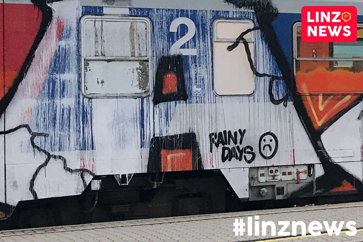 “Rainy Days” mit einem traurigen Smiley. Vermutlich also kein neues ÖBB-Design im Nahverkehr.