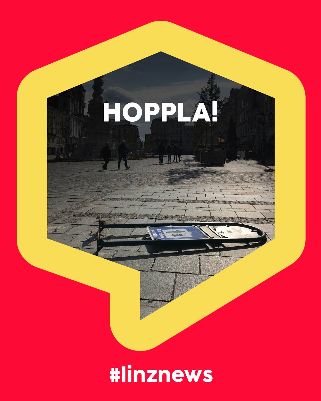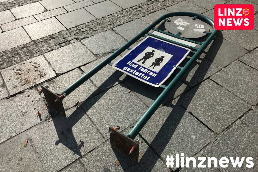 LINZ. Fußgängerzonen Schild am Hauptplatz gerammt.