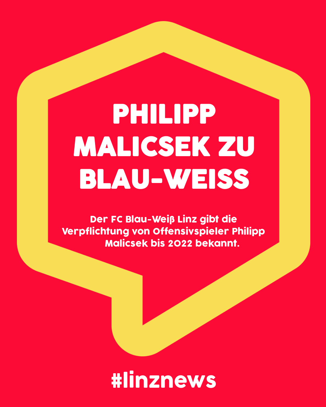 FUSSBALL. Der FC Blau-Weiß Linz gibt die Verpflichtung von Offensivspieler Philipp Malicsek bis 2022 bekannt.