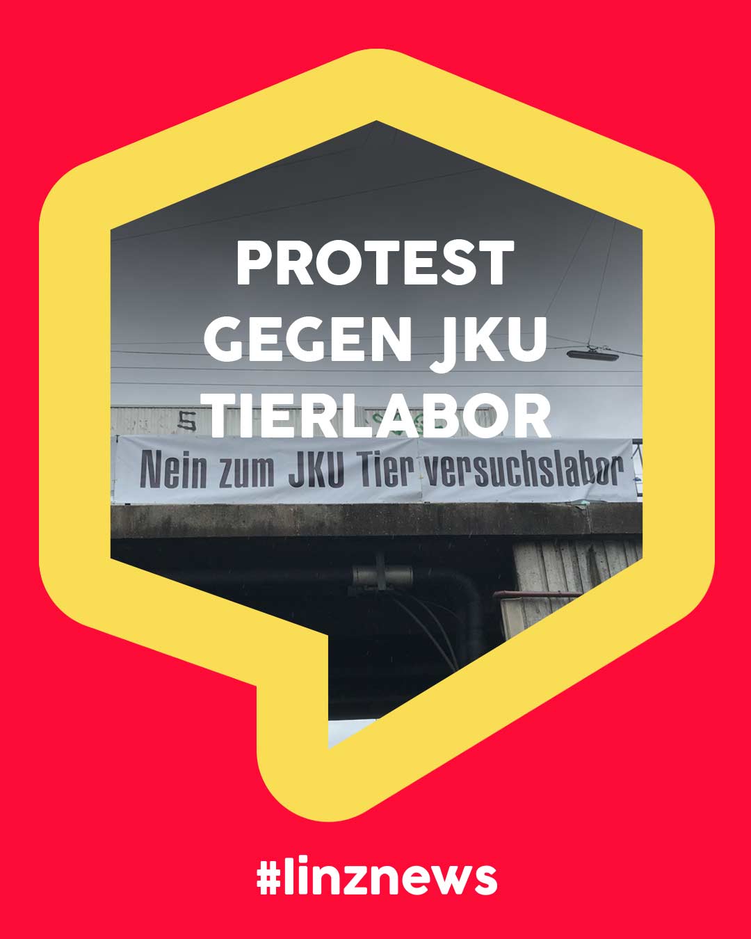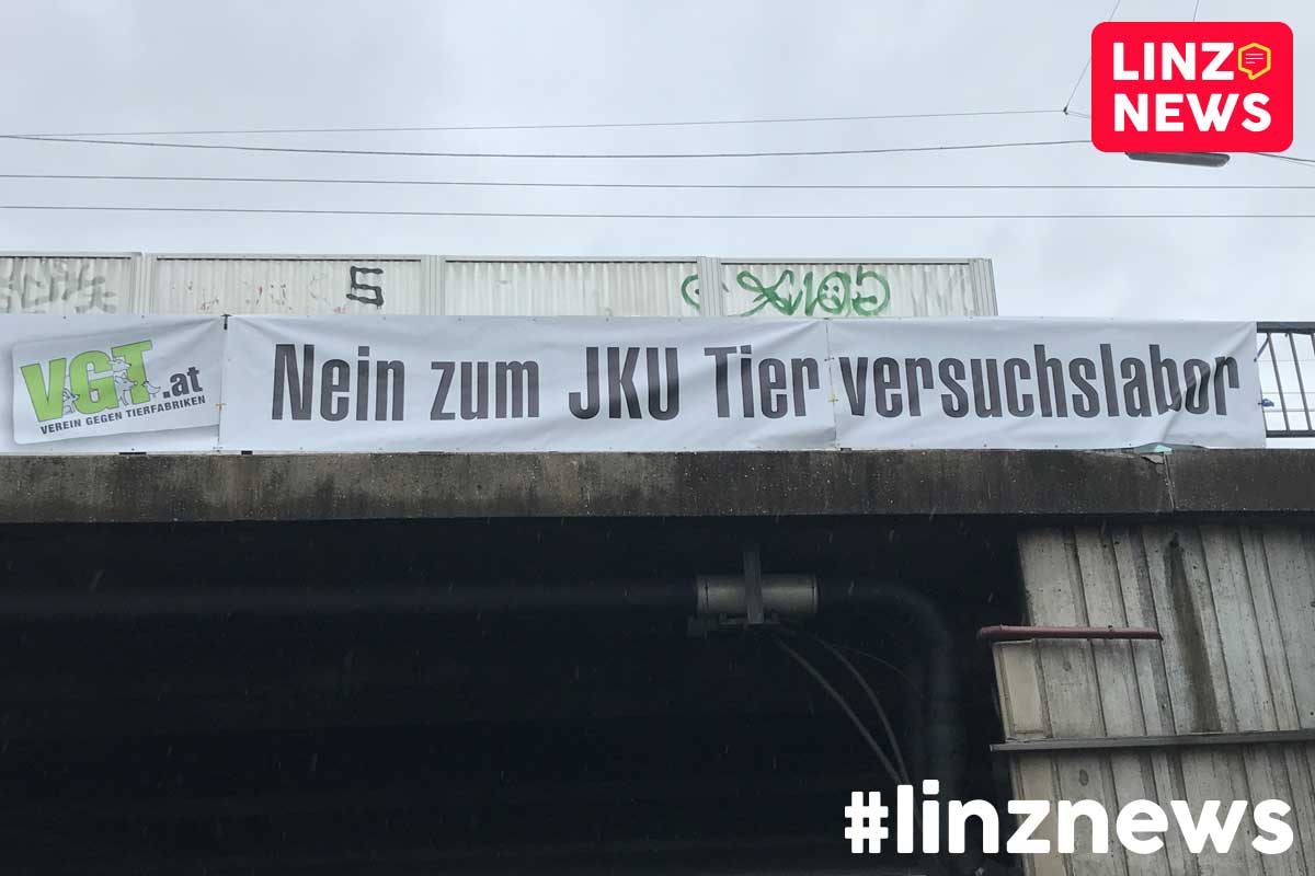 Derzeit läuft an der Linzer Stadtautobahn A7 ein Protest gegen das geplante Tierversuchslabor an der JKU.