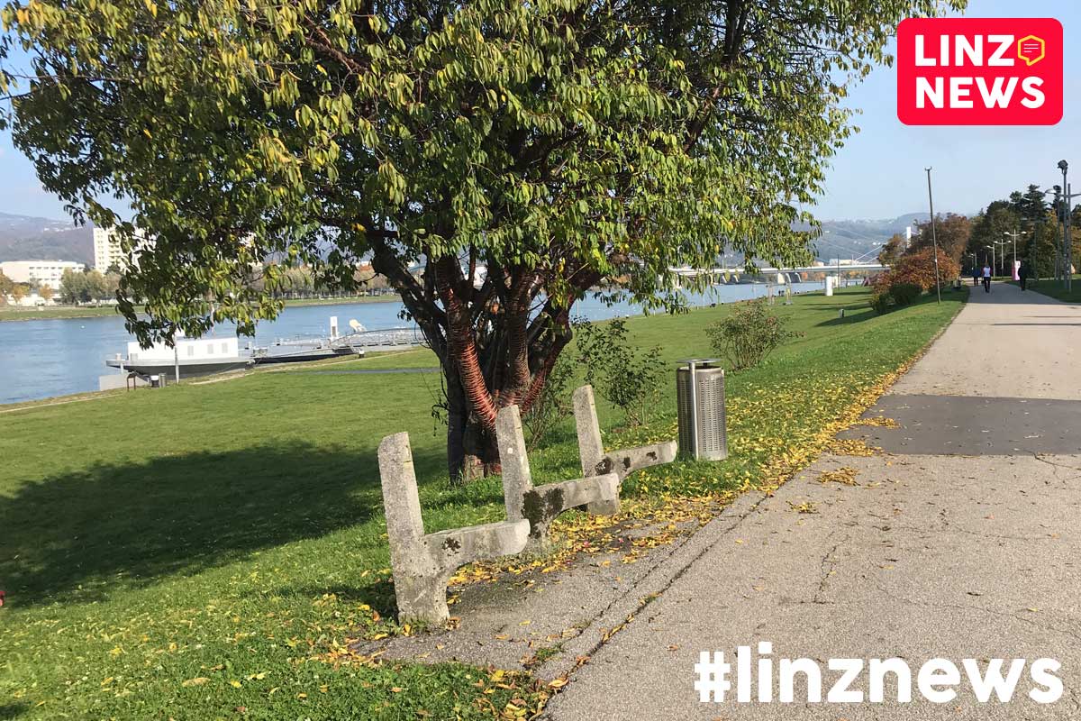 Nanu? Bei zahlreichen Bänken im Linzer Donaupark fehlen Sitzflächen und Rückenlehnen. Waren bis dato im Winter immer nur Gitter vor den Treppen mit einem Hinweis auf die “Wintersperre”, wurden heuer augenscheinlich auch einige Sitzbänke abmontiert.