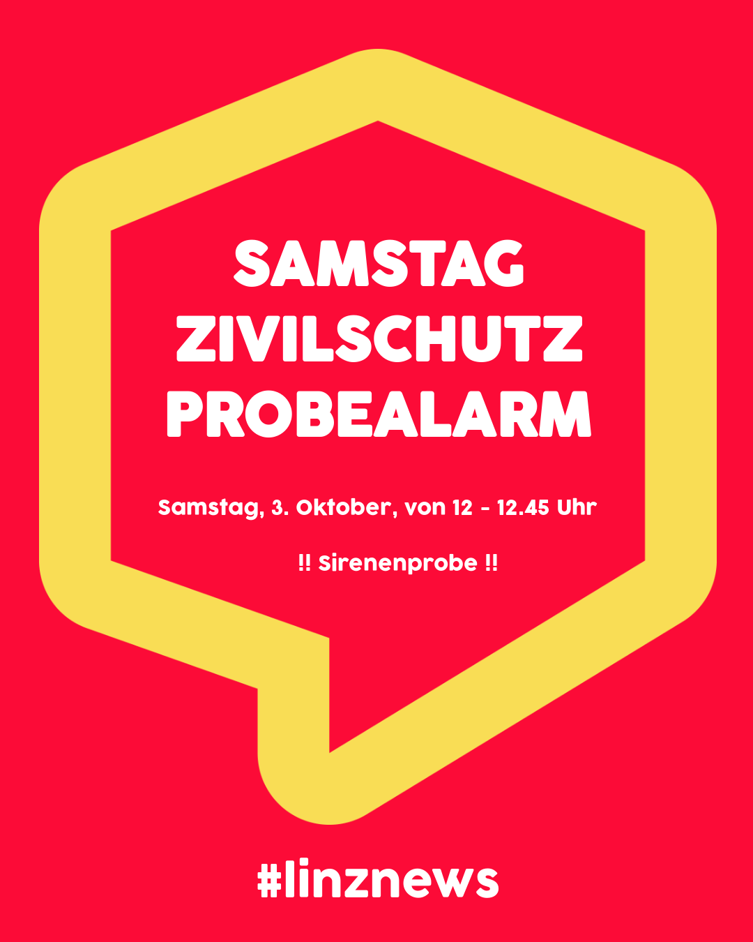 Samstag findet bundesweit zwischen 12 Uhr und 12.45 Uhr der jährliche Zivilschutz-Probealarm statt. Diese Sirenenprobe dient der technischen Erprobung aller Sirenenanlagen bei länger andauernden Sirenensignalen und Erhebung von Gebieten, wo keine Sirenensignale zu hören sind. Gleichzeitig soll die Bevölkerung mit der Bedeutung der Sirenensignale für den Zivilschutz- und Katastrophenfall und dem richtigen Verhalten vertraut gemacht werden.