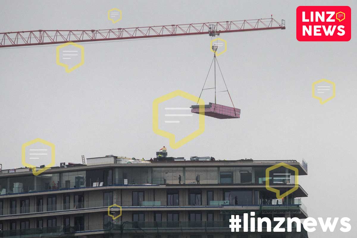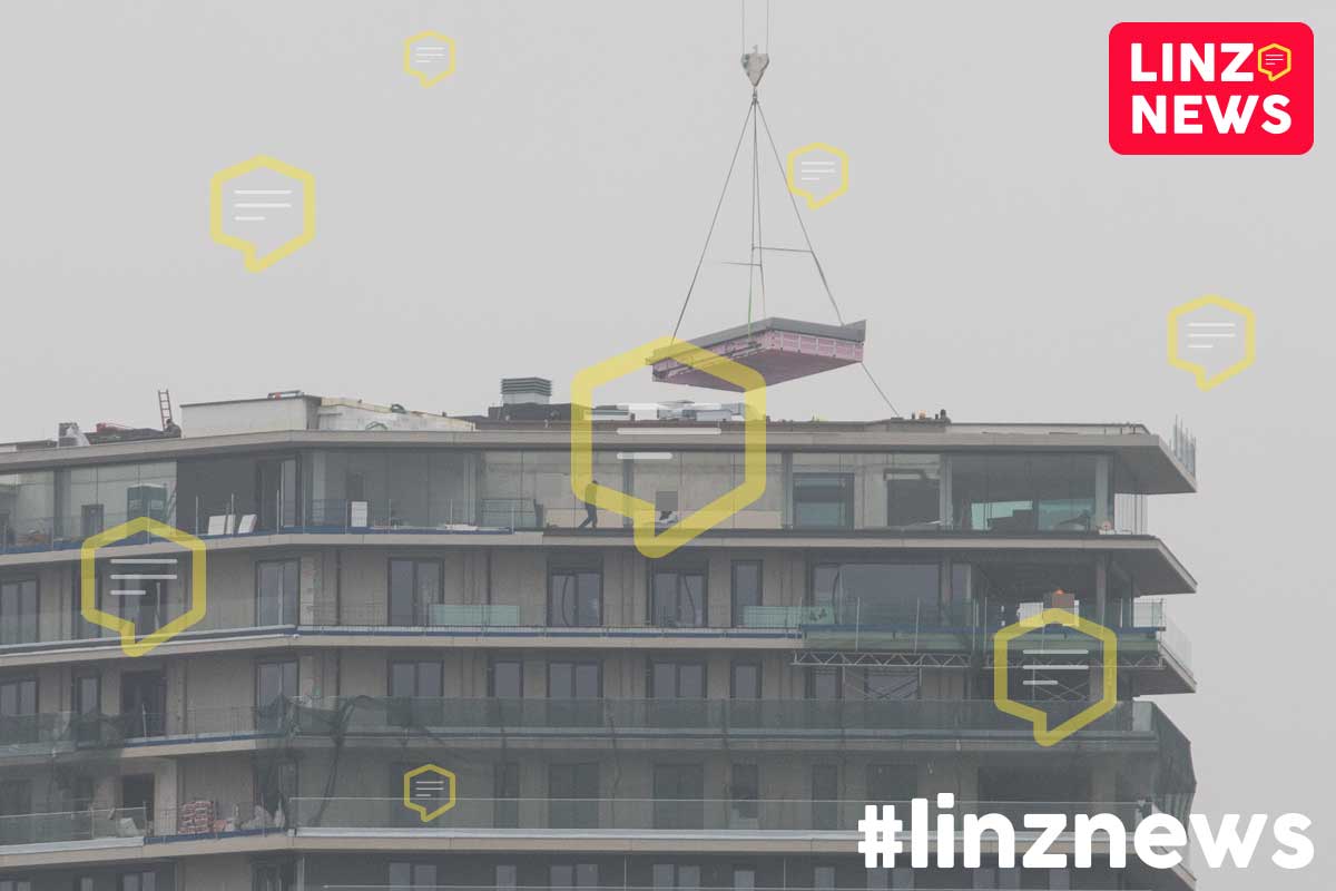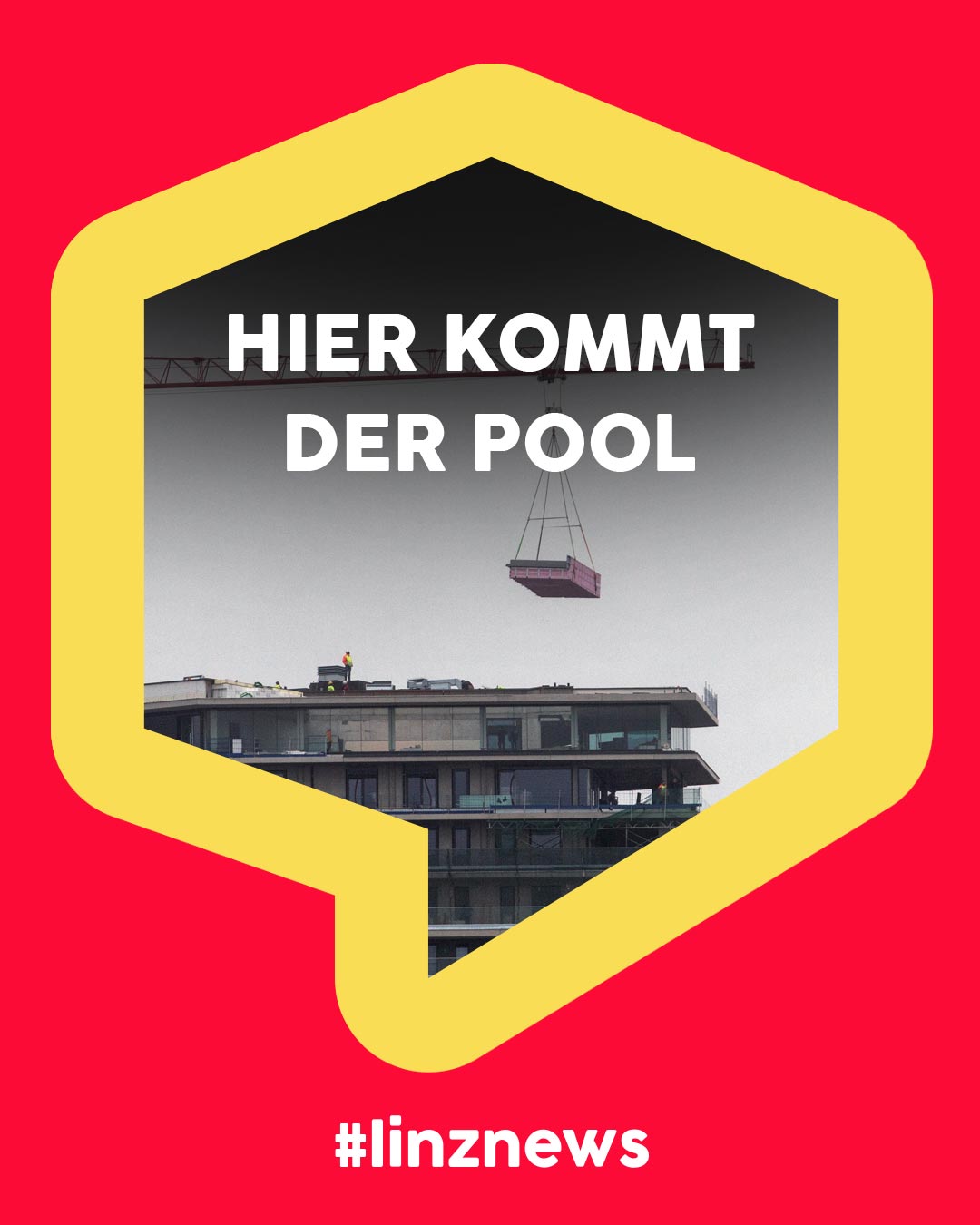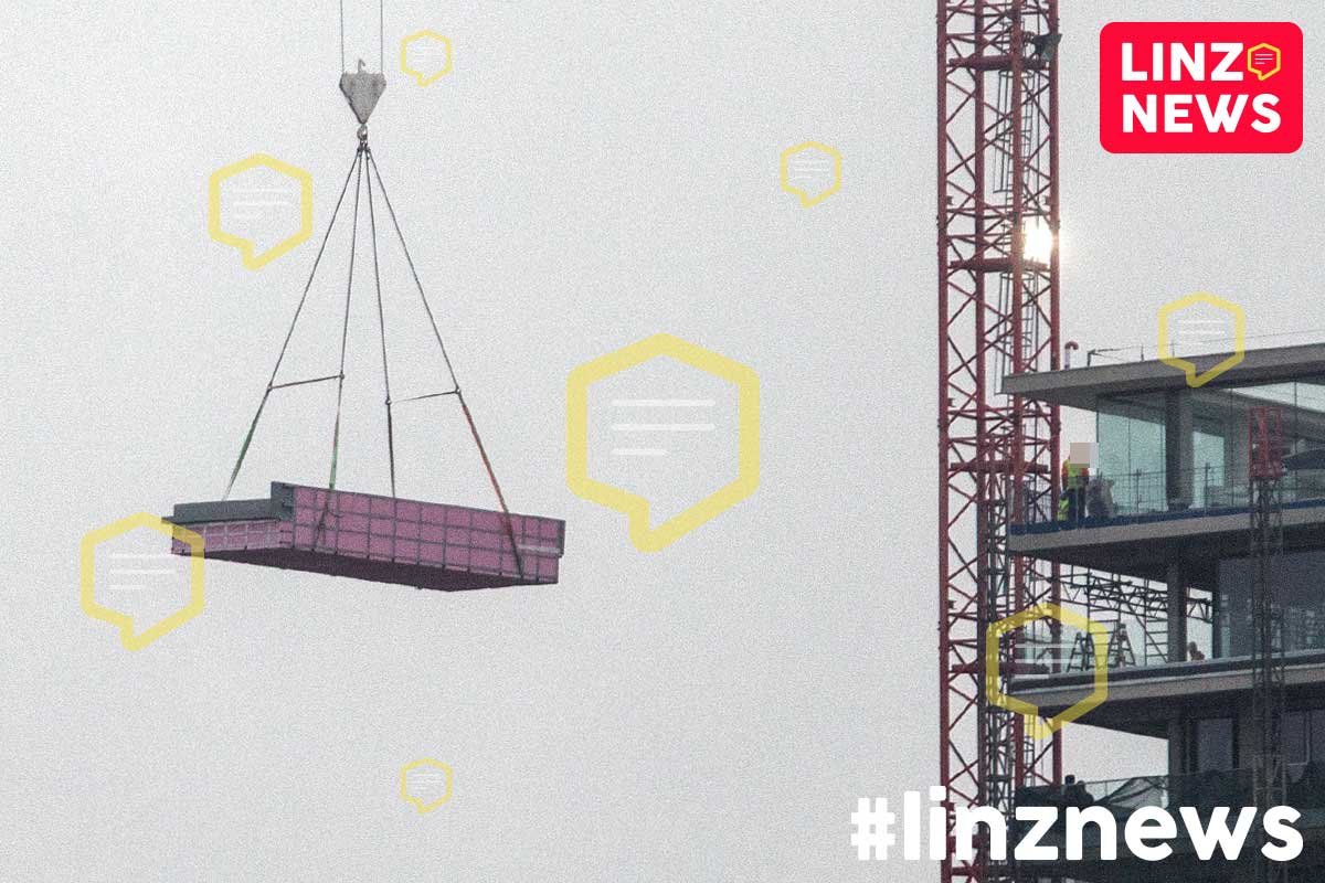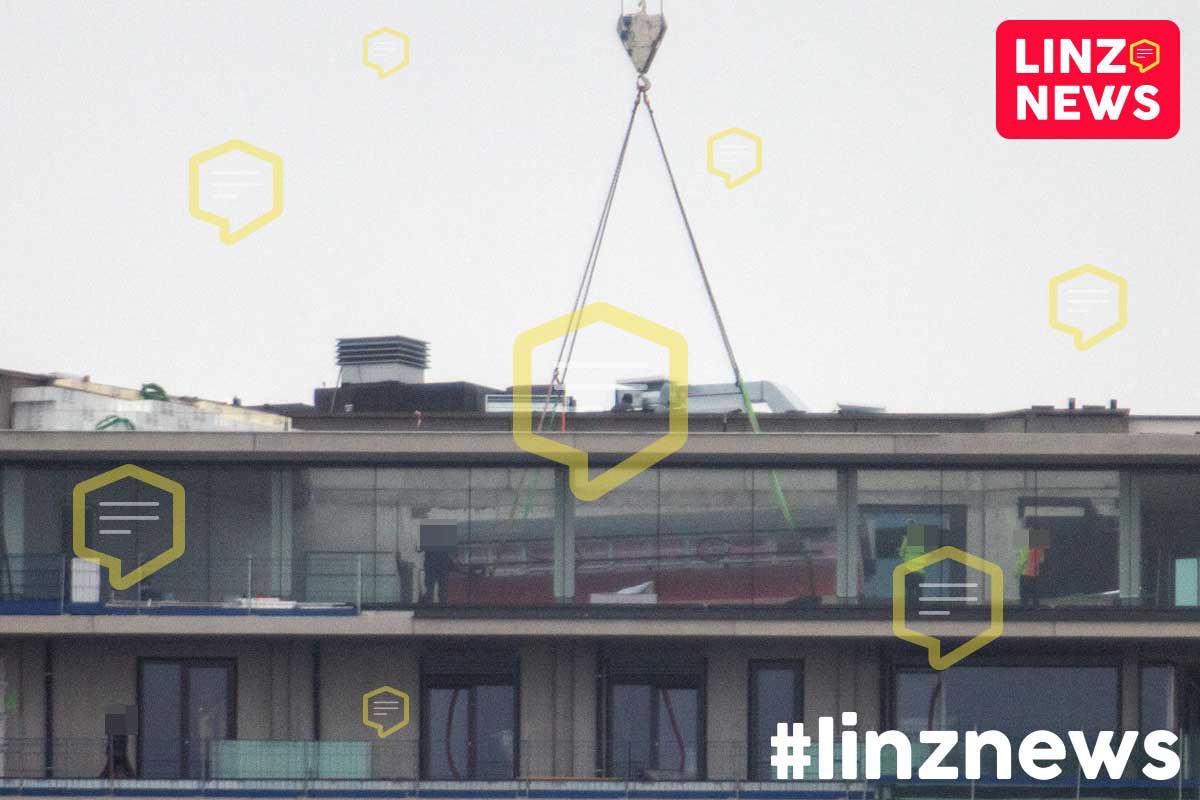 LINZ. Hier wird ein Pool in fast 100m Höhe geliefert!