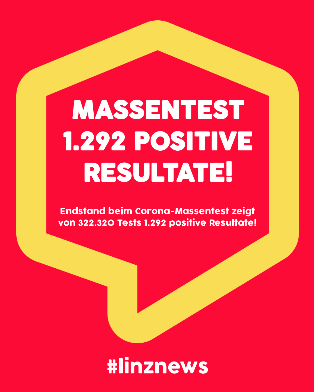 CORONA. Endstand beim Corona-Massentest zeigt von 322.320 Tests 1.292 positive Resultate!