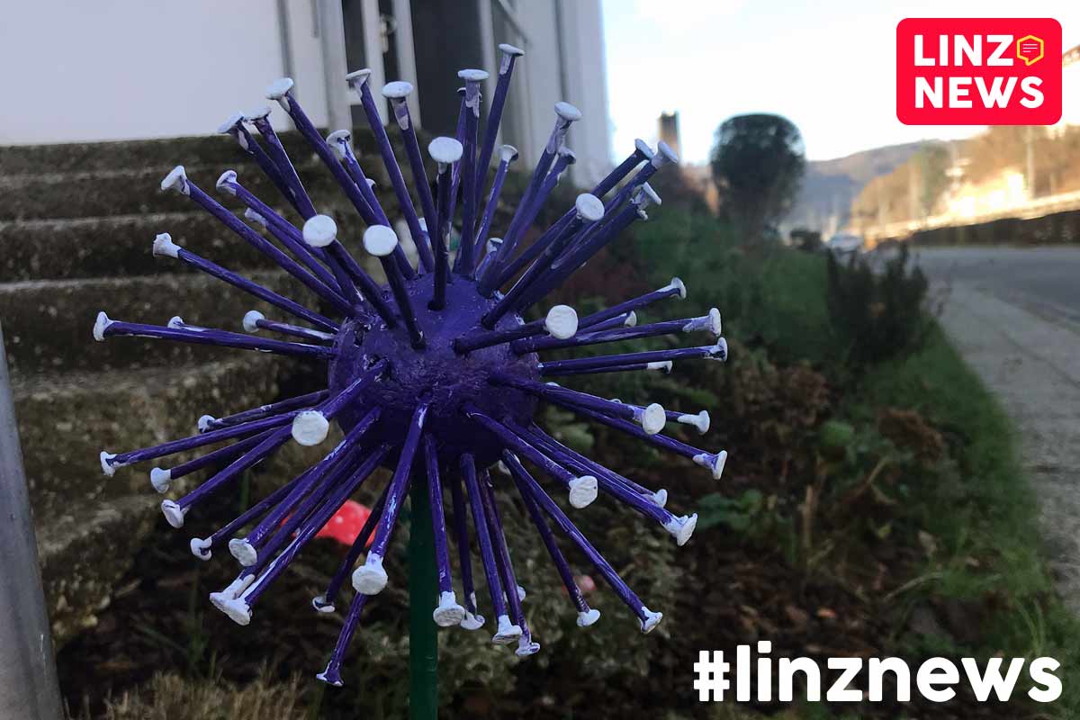 Kurios! Corona möchte keiner im Haus haben. Vor dem Haus schaut die Lage in Puchenau allerdings gleich ganz anders aus. Dort steht der Virus im Vorgarten als Deko!