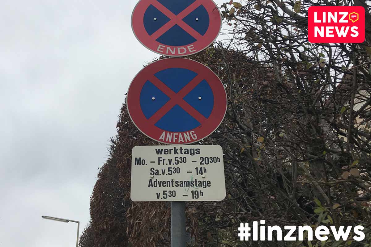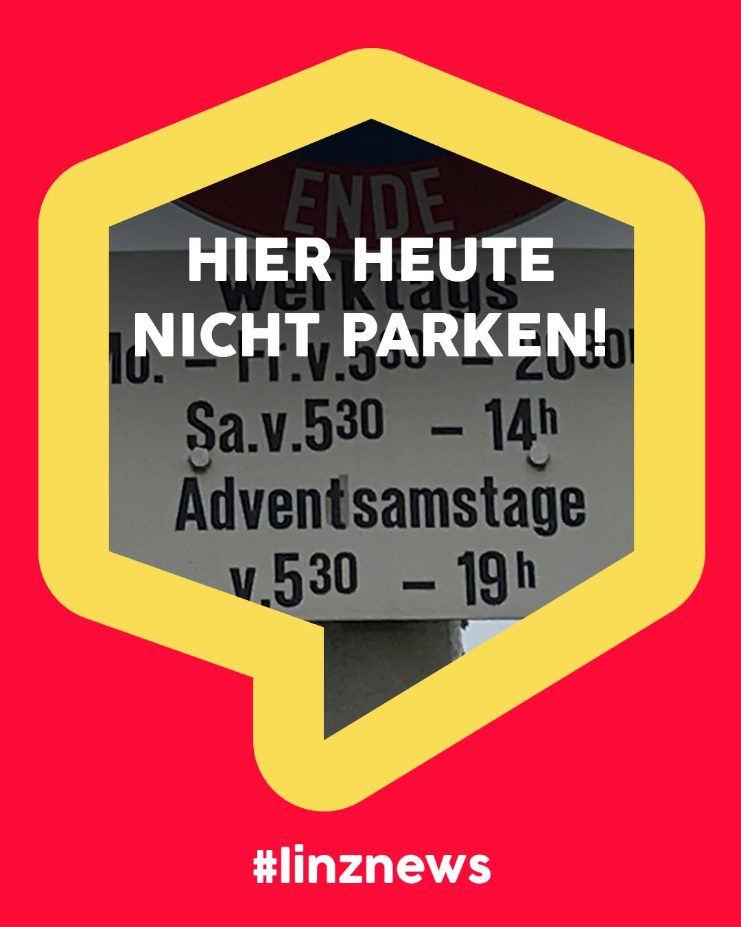 Liebe Autofahrer bzw. Autoparker! In Linz gibt es bei “Halten und Parken verboten” Schildern auch Zusatztaferl extra für Adventsamstage.