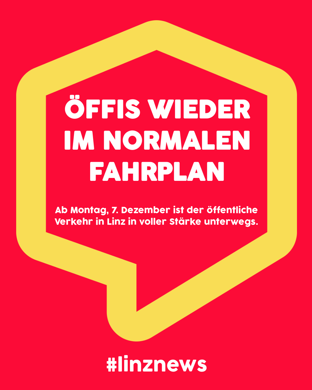 Ab Montag, 7. Dezember ist der öffentliche Verkehr in Linz in voller Stärke unterwegs