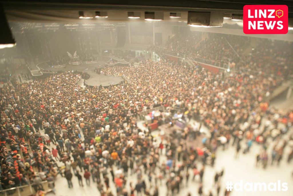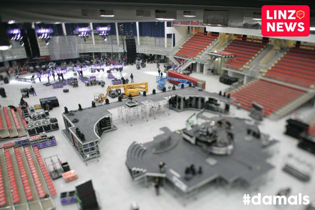 Die nahezu ausverkaufte Tips-Arena auf der Gugl war nur 22 Stunden zuvor noch Schauplatz der Handball Europameisterschaften. Der Umbau in der Halle war damals eine Meisterleistung!