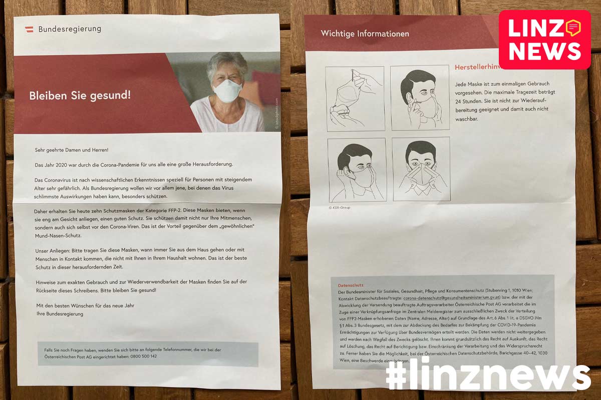 LINZ. Nach der Ankündigung im Vorjahr sind nun die ersten Gratis FFP2-Masken eingetroffen.