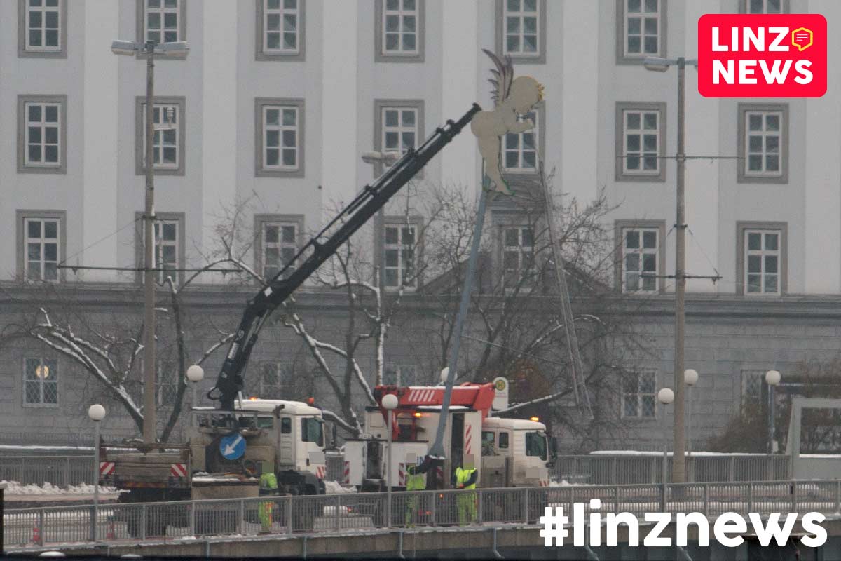 Weihnachten ist nun offiziell vorbei! Der Engel auf der Nibelungenbrücke wurde heute abmontiert.