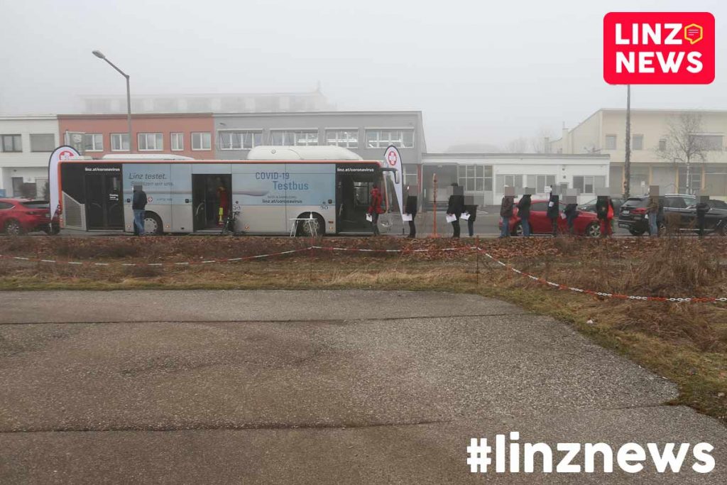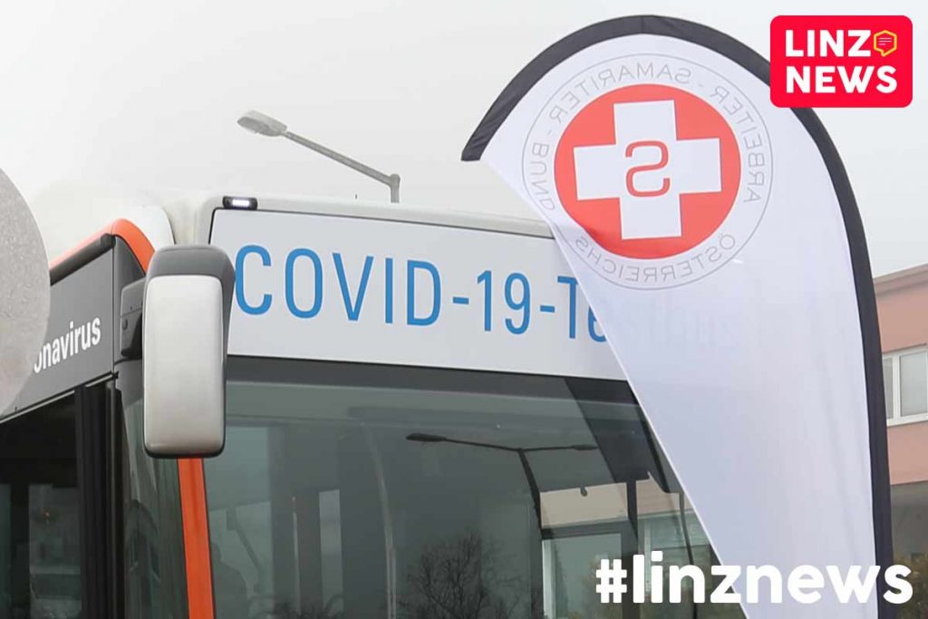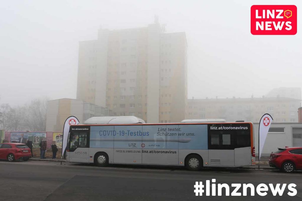 Der eigentlich schon für den Verkauf ausgemusterte Bus wurde im Innenraum etwas umgebaut und tourt nun in seiner 2. Karriere als mobile Teststraße durch Linz.