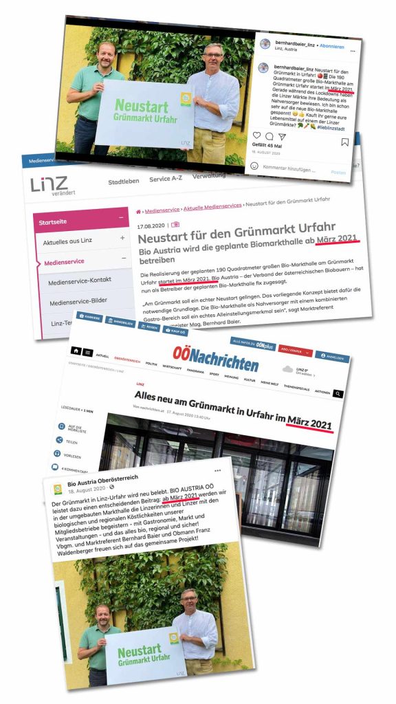 Die permanenten Verzögerungen muten derzeit ganz besonders kurios an. Gab doch der zukünftige Betreiber “Bio Austria” erst gestern eine 23%ige Steigerung beim Bio-Umsatz an. Wann wenn nicht jetzt wäre der Zeitpunkt zum Verkauf von Bioprodukten ideal? Auf was wird gewartet?