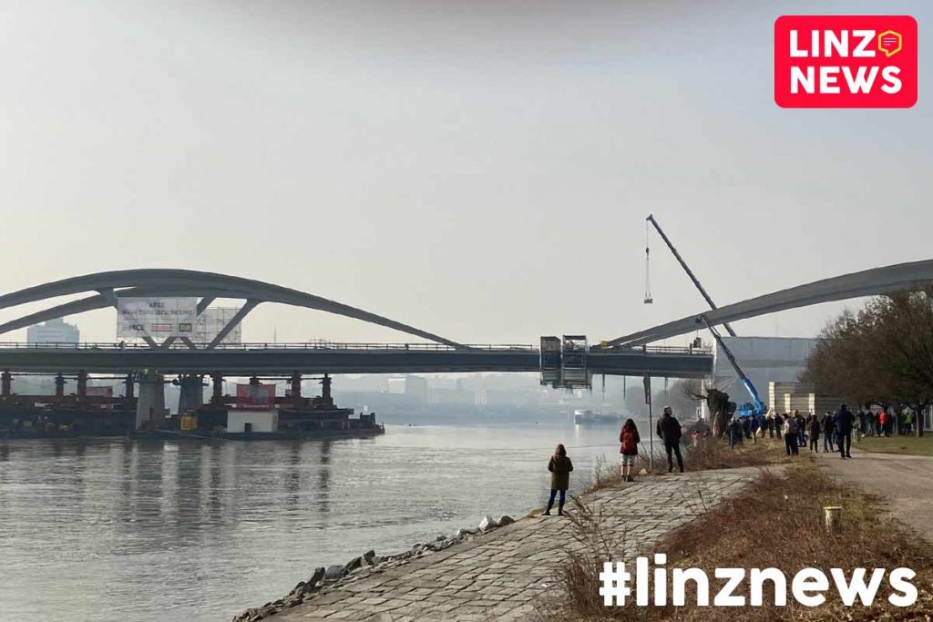 Jetzt liegt der Brückenbogen auf dem Pfeiler! Zwei Drittel der Neuen Donaubrücke sind also ab sofort zu bestaunen.