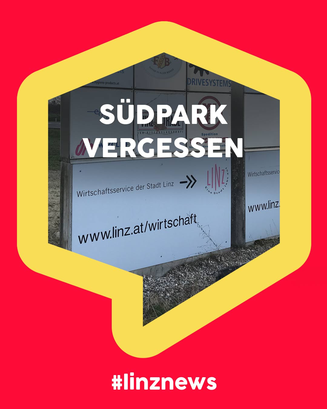 Im Linzer Süden ist die Innovationshauptstadt noch ganz schön retro! Nachdem die Landeshauptstadt im Februar 2008 (!) ein neues Logo präsentierte – um für das Kulturjahr Linz 09 schick zu sein – gibt es 2021 noch übergroße Werbetafeln für den Südpark im Uralt-Design.