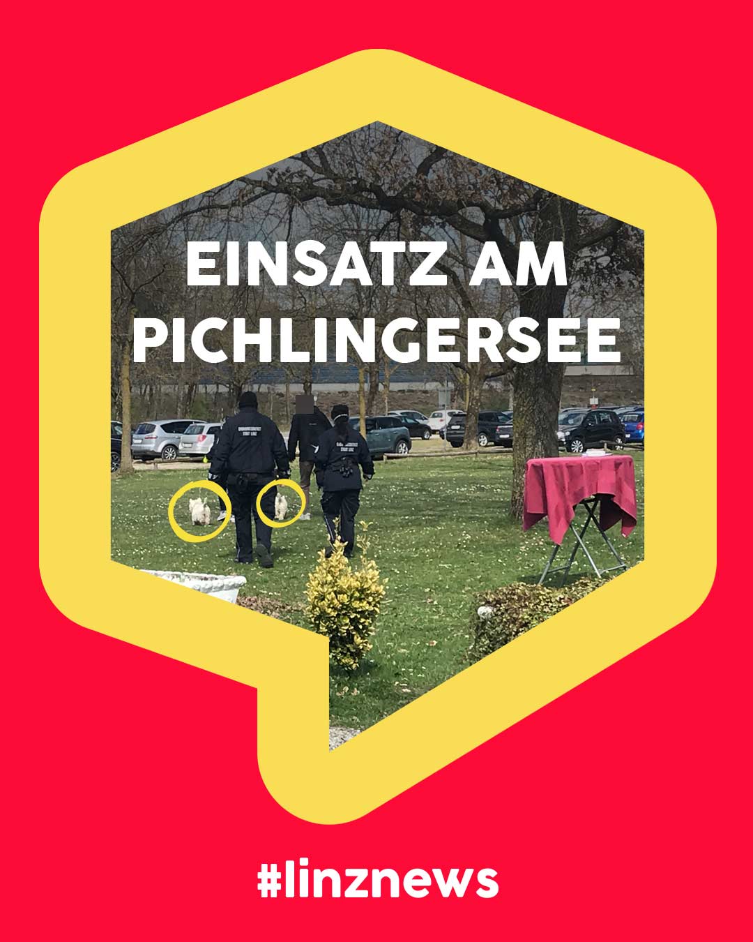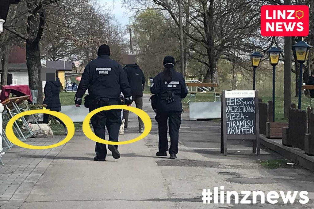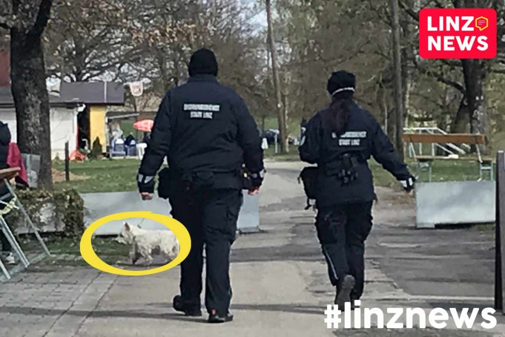 Kuriose Szenen und Aufregung am Linzer Pichlingersee am Ostersonntag. Zwei Spaziergänger hatten – trotz Verbots – ihre kleinen Hunde bei einer Seerunde mit dabei. Wie Bilder vom Nachmittag zeigen, führte dies zu einer “Verfolgungsjagd” durch die umgangssprachlich als Stadtwache bekannten Aufsichtsorgane.