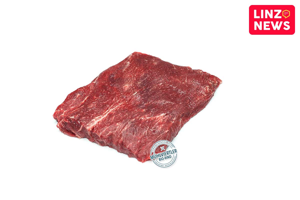 Es wird aus einem Teil der Rinderschulter, hierzulande bekannt als das “Schulterscherzl” geschnitten.
