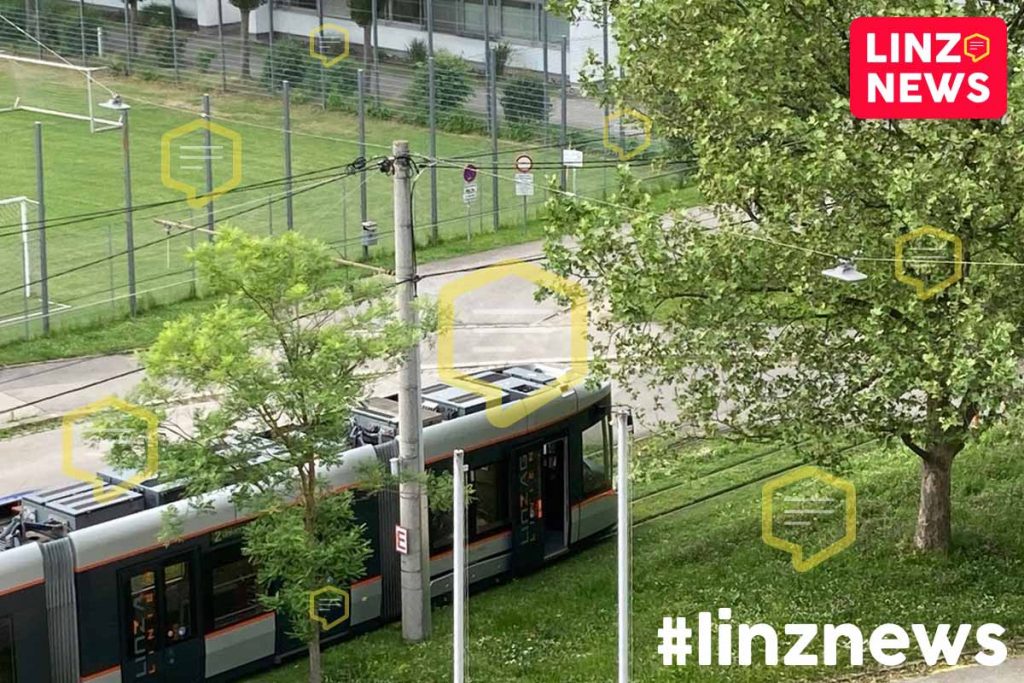 Kurz vor der Schleife Ferihumerstraße steht derzeit eine Straßenbahn. Derzeit kein Betrieb!