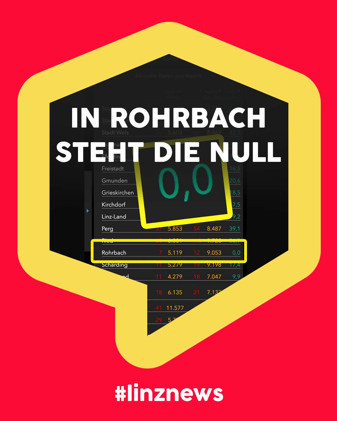 Heute um 14:15 Uhr zeigte das COVID-19 Dashboard des Landes OÖ für Rohrbach bereits den Siebentageswert von Null. Die Zahlen sinken derzeit deutlich. Linz hat einen Wert von 24,7!