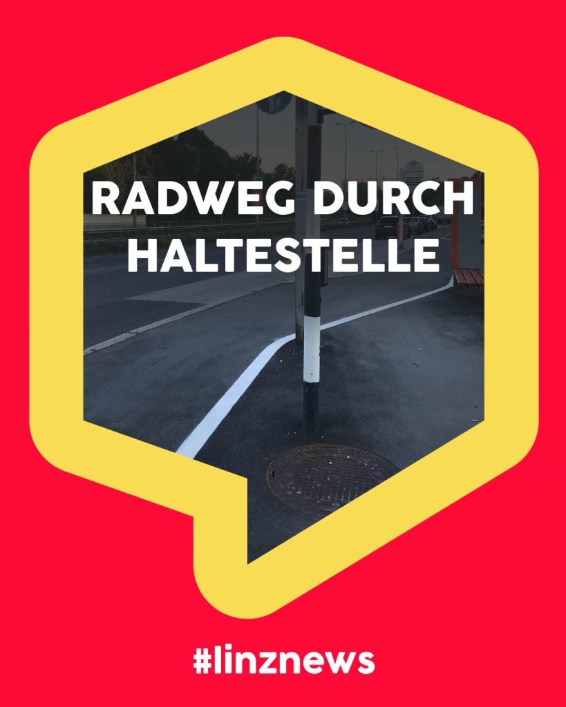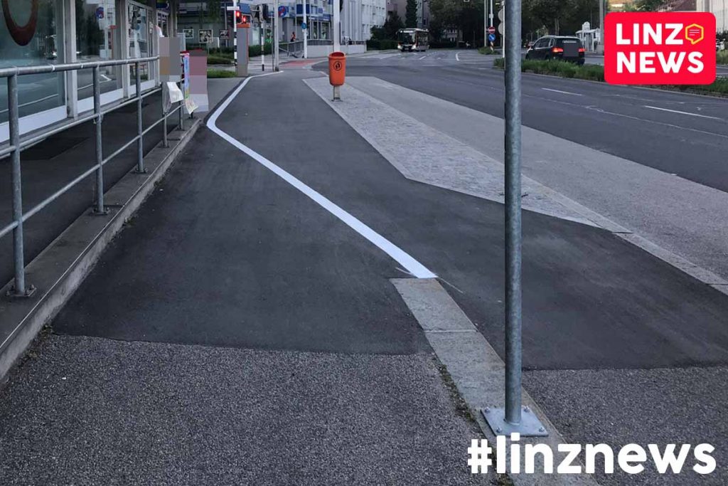 LINZ. Radweg durchschneidet Bushaltestelle und Gehweg endet an Sperrlinie!