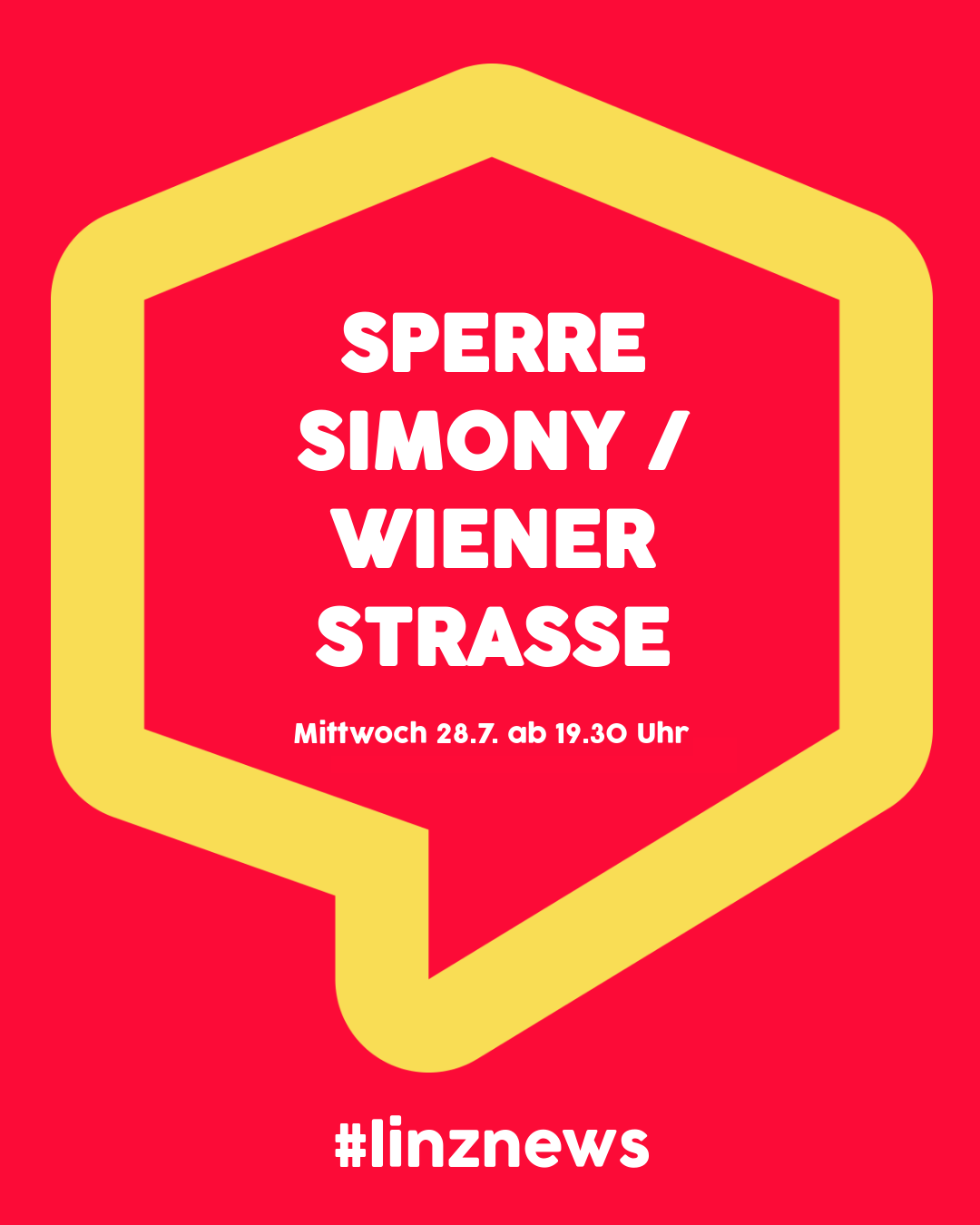 Aufgrund von Vorarbeiten muss der Bereich “Simonystraße / Wiener Straße“ für den Individualverkehr bereits ab Mittwochabend, 28. Juli, ab 19.30 Uhr, gesperrt werden. Der Individualverkehr wird ab dann (bis Montag, 2. August) großräumig umgeleitet.