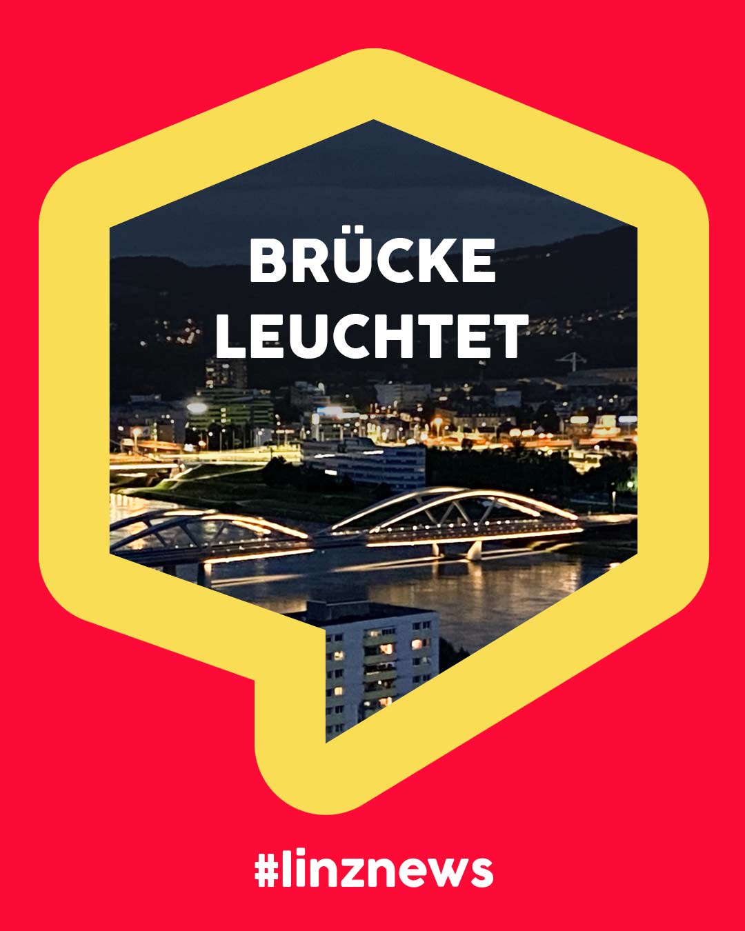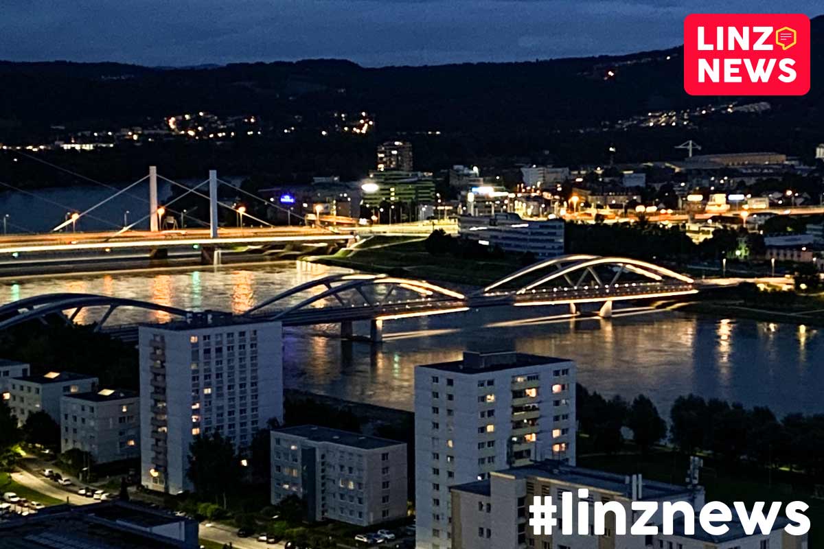 EXKLUSIV! Wir haben gerade ein Leserfoto direkt aus dem Bruckner Tower bekommen. So schaut die bereits zur Hälfte beleuchtete Neue Eisenbahnbrücke von dort oben aus!