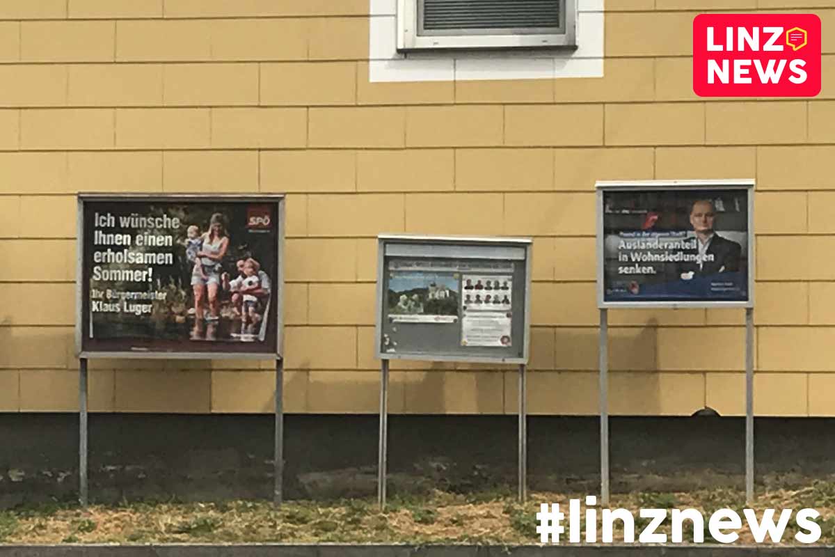 Hinweis: Nicht alle Parteien in Linz betreiben/besitzen Schaukästen. Bilder werden nach Verfügbarkeit in die Liste übernommen, wobei die Liste nicht den Anspruch der Vollständigkeit erhebt!