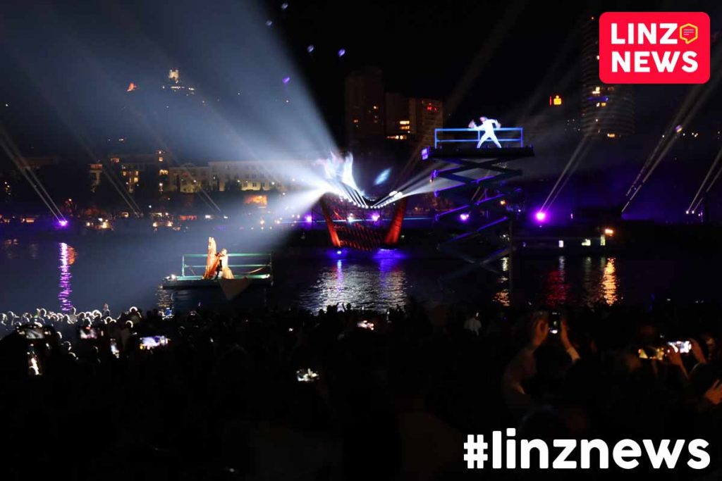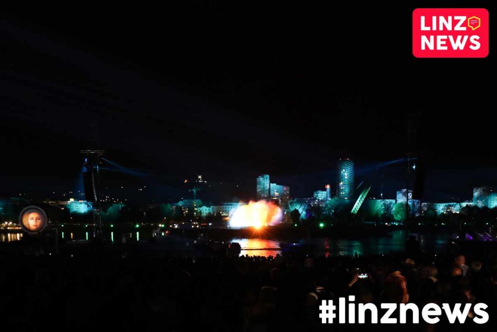 Der Linzer Donaupark wurde laut Veranstalter von 40.000 Besuchern bevölkert. Panta Rhei wurde inszeniert von Star-Regisseur Robert Dornhelm in Zusammenarbeit mit Co-Regisseur Christoph Engel und Film-Komponist Roman Kariolou.