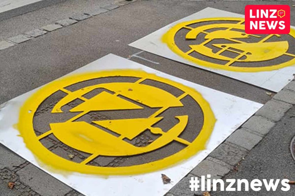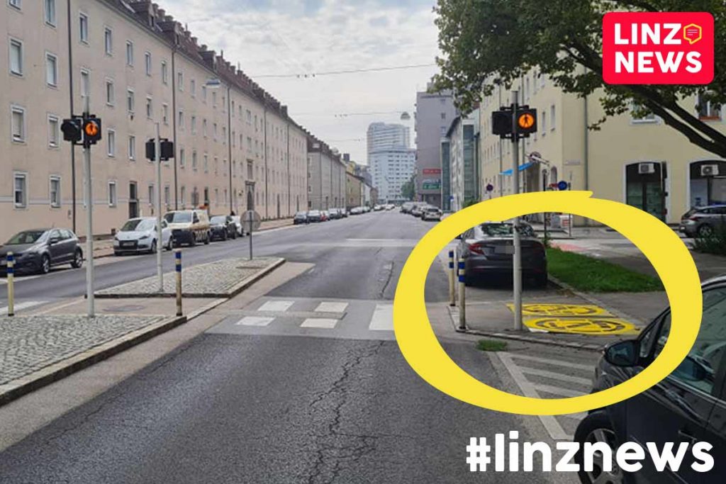 LINZ. ++ LESERNEWS ++ Bodenmarkierungen vor dem Zebrastreifen sollen Unfällen durch Unachtsamkeit vorbeugen.