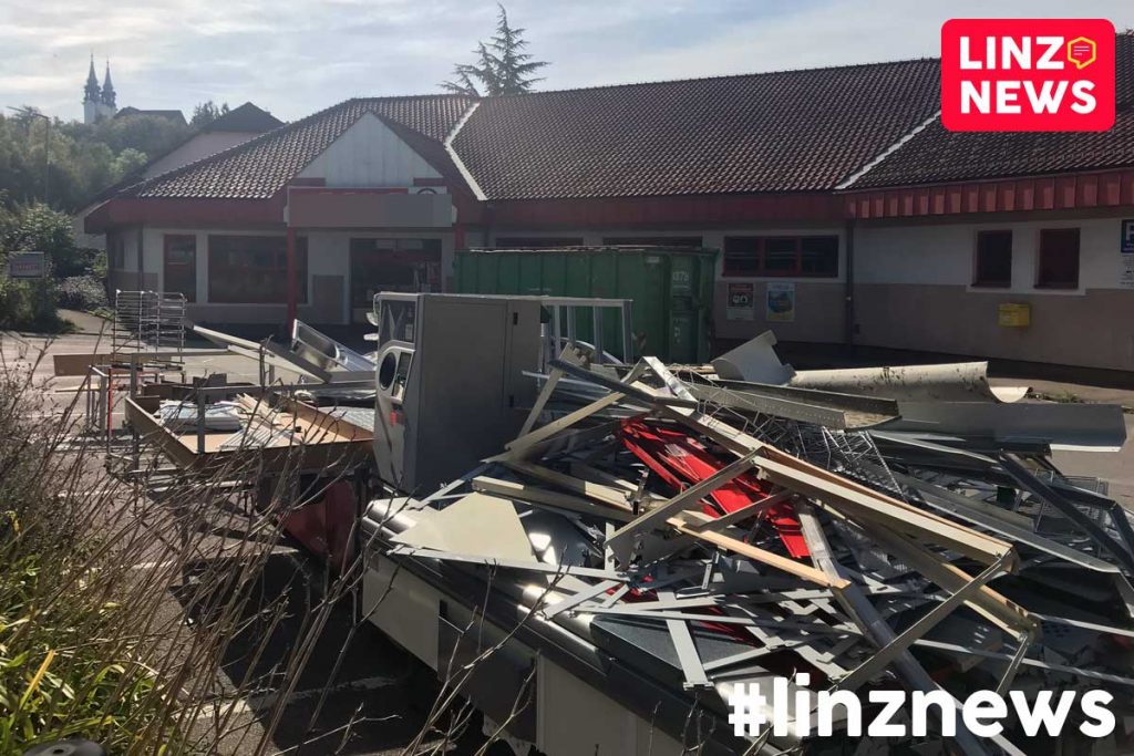 Übergewichtige Pöstlingberger haben eine unfreiwillige Abnehmhilfe bekommen. Der alte Supermarkt wurde geschlossen und die Geschäftseinrichtung samt Pfandflaschenrückgabeautomat liegt am Parkplatz und wartet auf den Schrotthändler.