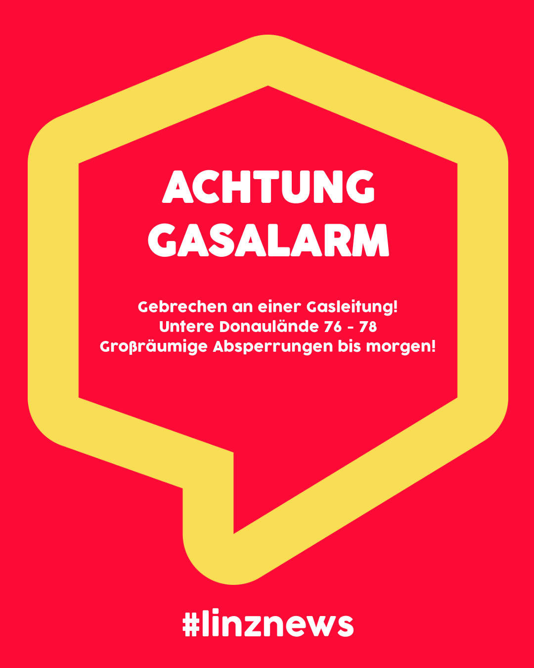 Im Bereich Untere Donaulände 76 – 78 ist es zu einem Gasgebrechen gekommen!