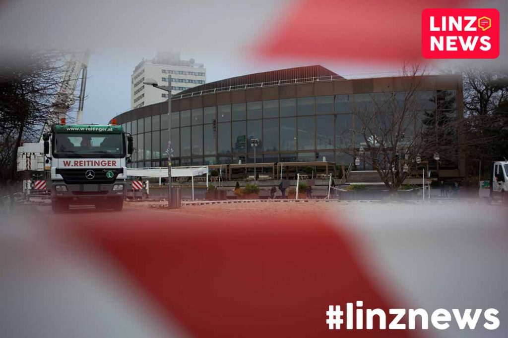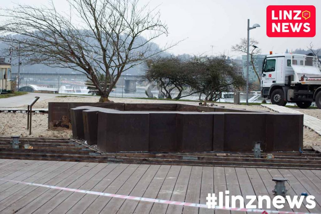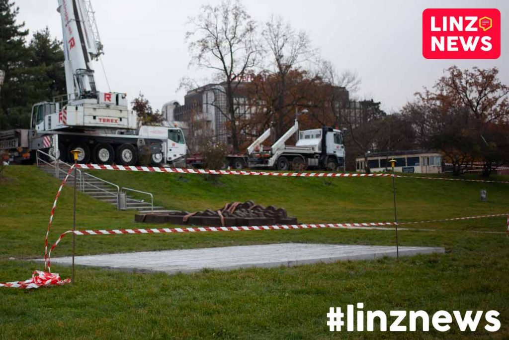 Zukünftig wird die Skulptur unterhalb vom Brucknerhaus auf einem dafür extra gegossenen Fundament stehen.